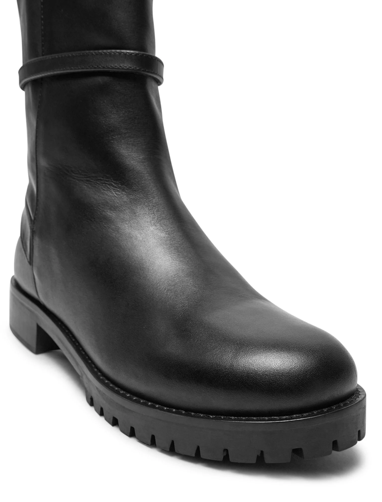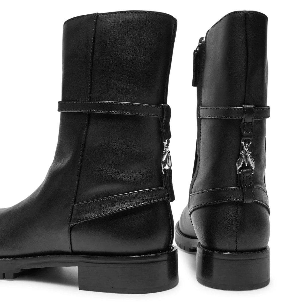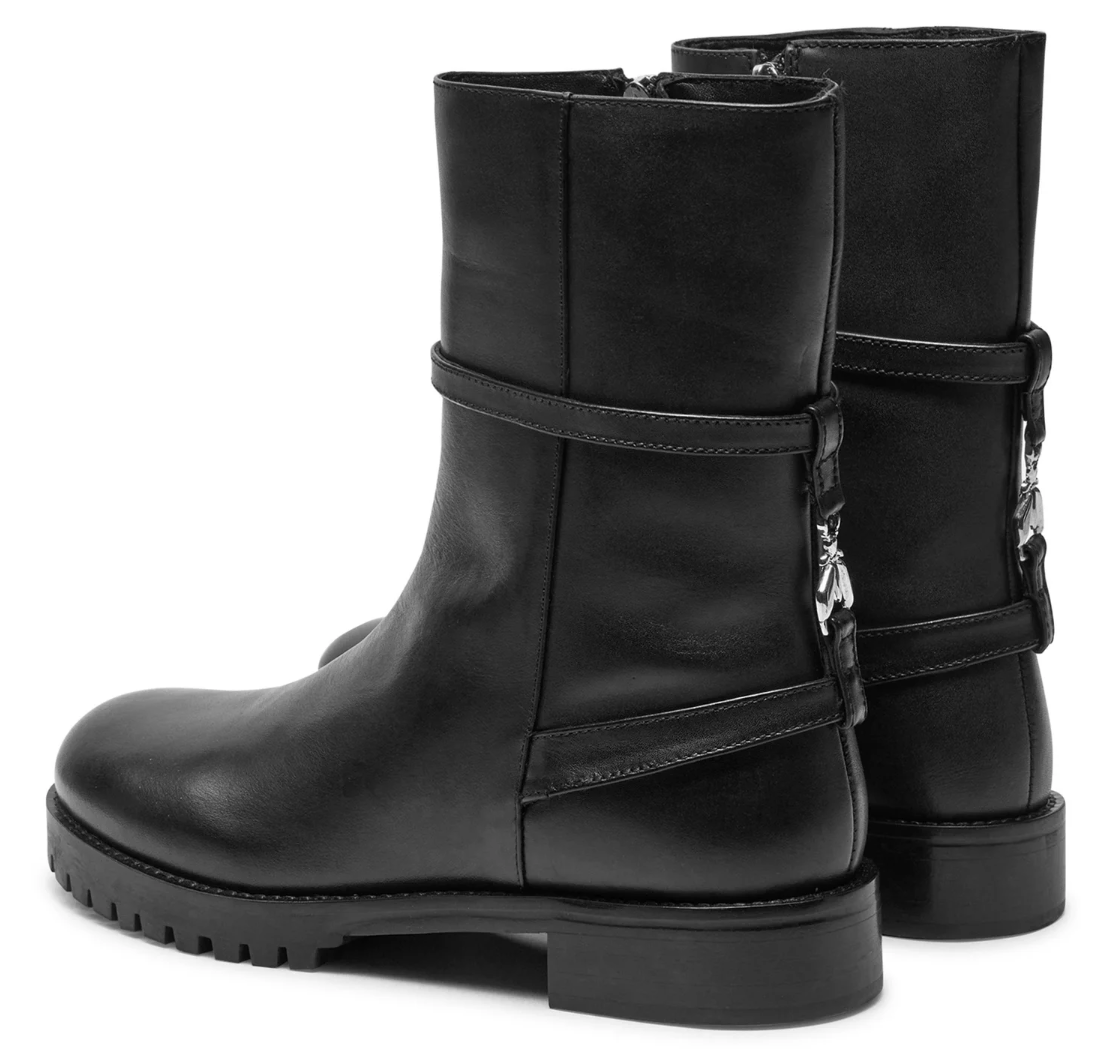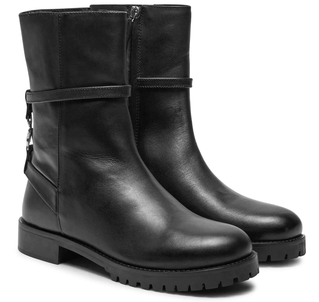 Patrizia Pepe stivaletti in pelle di vitello nera, zip di apertura sul lato, suola con carrarmato, logo metallico affrancato sul tallone