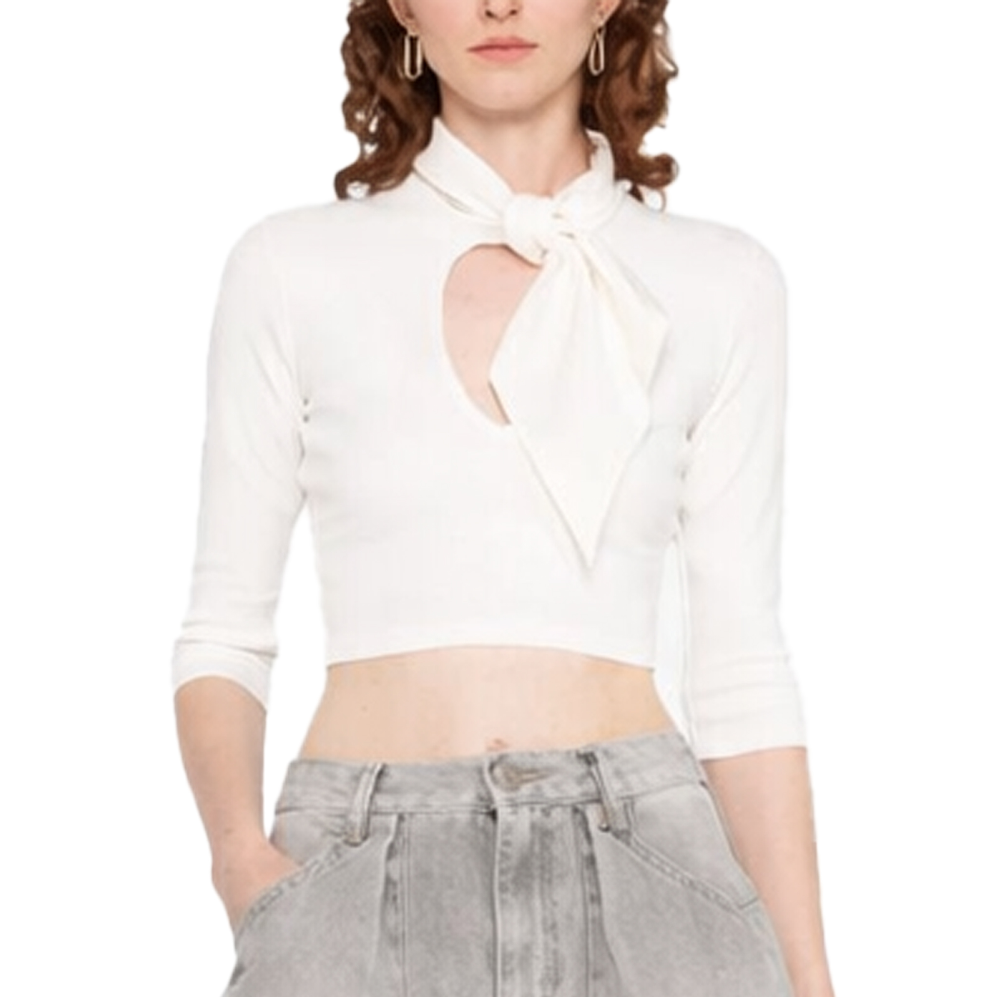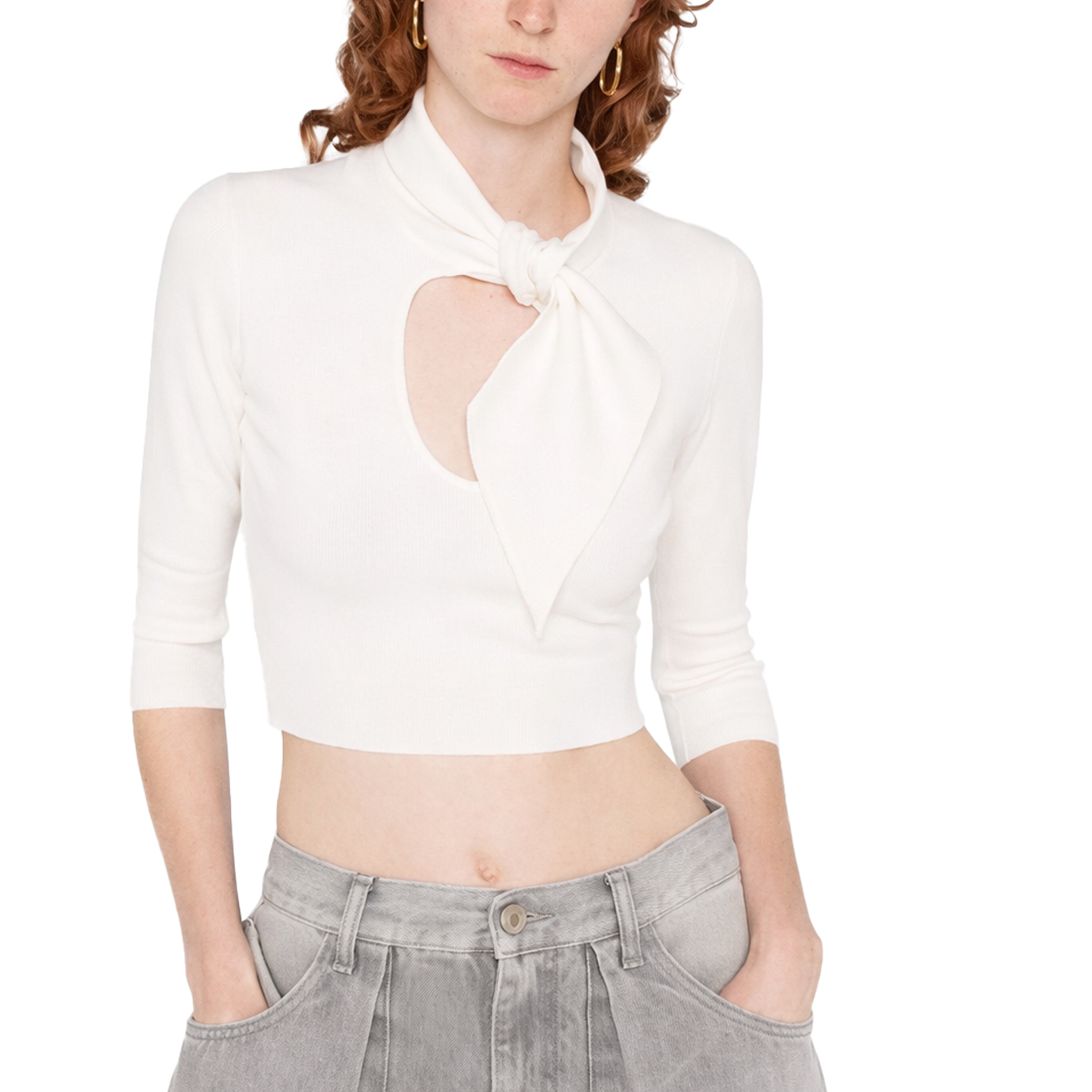 The Attico maglia top bianca, cut off forntale, colletto con fiocco e orlo dritto.