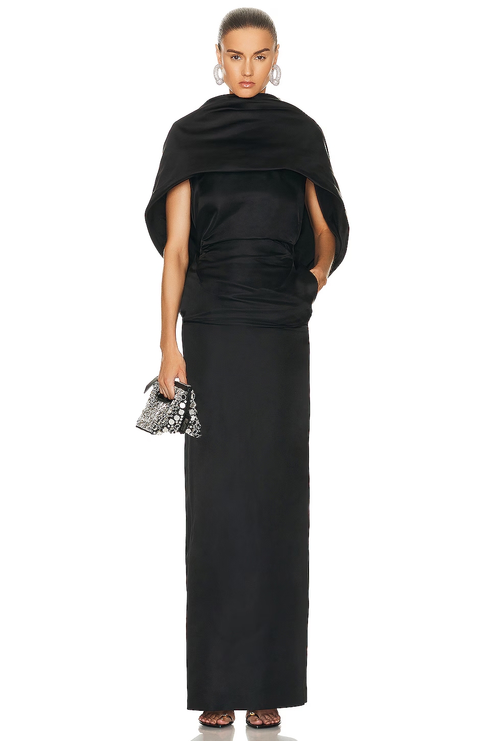 The Attico abito lungo nero con scollatura sulla schiena e spacco sulla gonna.